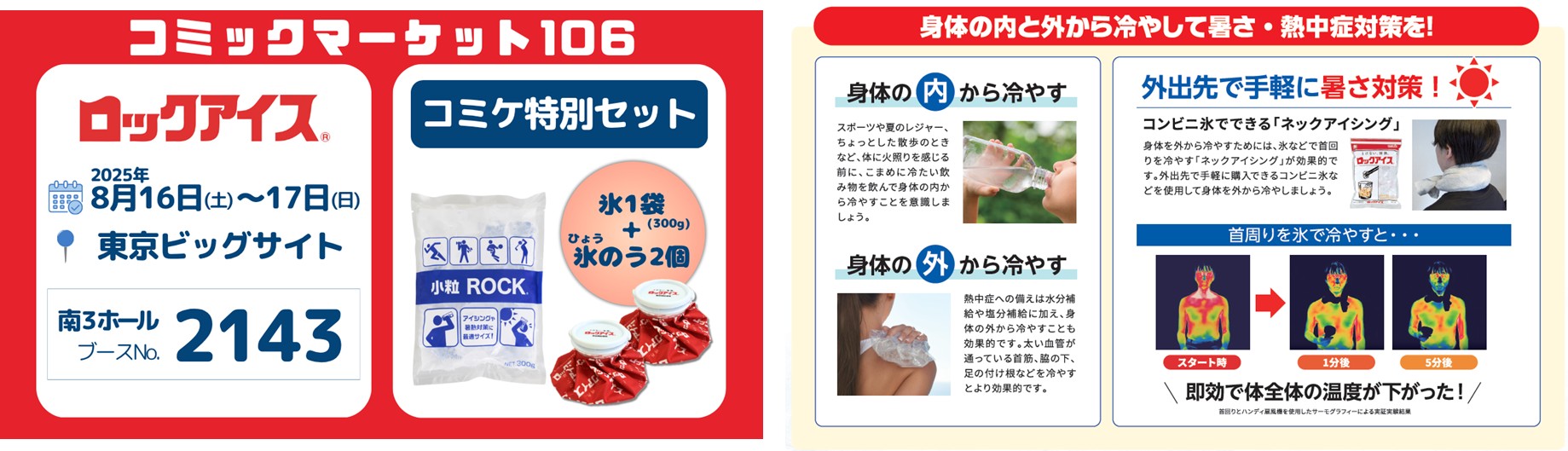 小久保製氷冷蔵株式会社は「コミックマーケット106」に初出展し、暑さ対策として「氷(小粒ROCKⓇ300g)」の販売