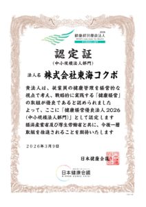 コクボグループ7社は、経済産業省が創設し日本健康会議が認定する健康経営優良法人制度において「健康経営優良法人2026(中小規模法人部門)」に認定されました。